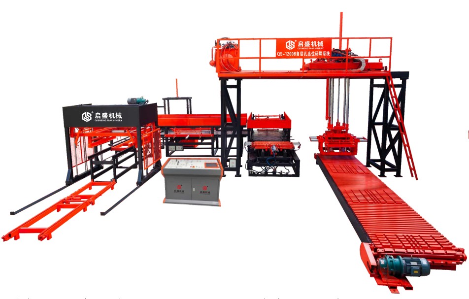 ?設(shè)備簡介 QS-1200B型自留孔高位碼垛系統(tǒng)是公司為了適應(yīng)市場多元化發(fā)展需要潛心研發(fā)的擁有獨立自主知識產(chǎn)權(quán)的專利產(chǎn)品.生產(chǎn)線適用于簡易型砌塊生產(chǎn)線的干產(chǎn)品碼垛,屬于半自動碼跺生產(chǎn)線,一般情況下獨立設(shè)置于產(chǎn)品養(yǎng)護堆場附近,對于養(yǎng)護好的制品就地碼垛,亦可串聯(lián)于砌塊生產(chǎn)線之中,實施在線碼垛。 本自動碼垛系統(tǒng)可將不同型號磚機生產(chǎn)的不同品種、不同規(guī)格的砌塊進行磚板分離、排塊整理,最后組成一米左右的方垛進行交叉碼垛,并可根據(jù)需要自動生成叉磚孔位。碼垛高度最高可達1400mm.碼垛完成后通過重型鏈?zhǔn)捷斔蜋C整垛輸出,可人工打包也可配套自動打包機.整套生產(chǎn)線上帶個節(jié)點都有做預(yù)存位置節(jié)約叉車跑動時間。 整套系統(tǒng)采用PLC+觸摸屏控制,配合激光感應(yīng)+翎畿傳感器,實現(xiàn)無人自動化運行,出現(xiàn)故障自動停機報警并顯示故障位速,無需專業(yè)技術(shù)人員就可輕松排除故障.搭載遠程控制系統(tǒng)+云數(shù)據(jù)設(shè)備生產(chǎn)廠家時時刻刻在辦公室就可解決一切問題.設(shè)備運行采用電、氣、液分別控制,互不干擾、動作連貫,約15s左右可碼一層,班碼磚量約150000塊(標(biāo)準(zhǔn)磚)。...