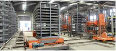 本生產(chǎn)線預(yù)制成型的濕磚由升板機(jī)將其提升放置在鐵架之上每一層磚板相互隔離,放滿之后可用又車將整個(gè)鐵架轉(zhuǎn)移至養(yǎng)護(hù)區(qū),也可配套新能源智能子母車將其轉(zhuǎn)運(yùn)至養(yǎng)護(hù)窯內(nèi)進(jìn)行養(yǎng)護(hù)。