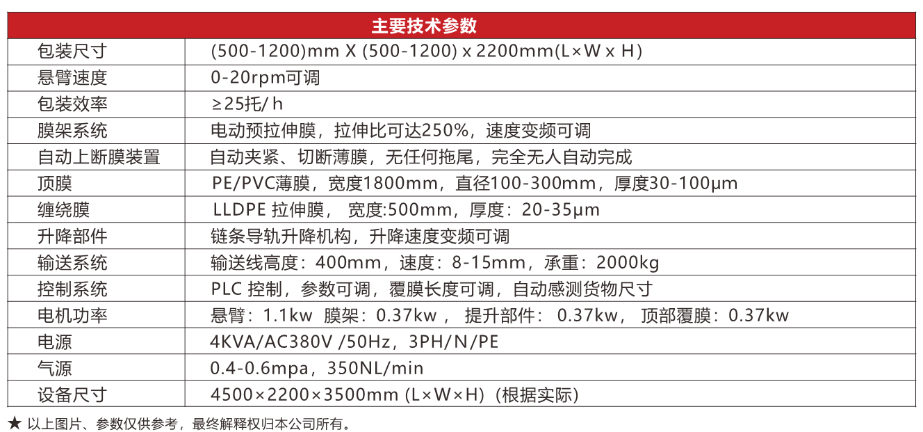 QS系列全自動懸臂纏繞覆膜包裝機(jī)是懸臂纏繞包裝機(jī)增加覆膜功能而成的集成一體式包裝設(shè)備,能夠完成纏繞包裝和頂膜覆蓋兩種功能,可將形成五面封閉的防潮、防雨、防塵的包裝體。實現(xiàn)無人化自動運行,效率高,包裝成本低,廣泛應(yīng)用于食品飲料、化纖化工、冶金建材等行業(yè),是提高自動化程度的好設(shè)備。